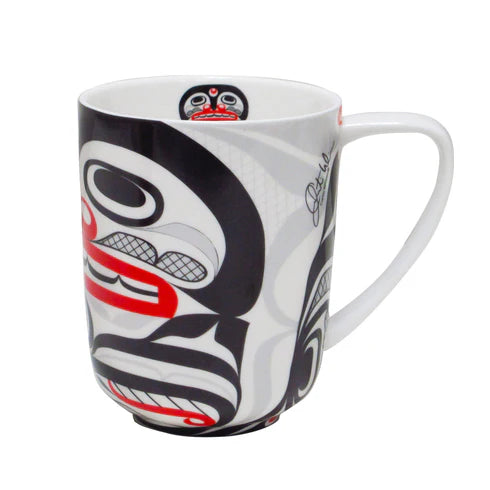 Each fine Porcelain mug comes with a specially designed box that features the artwork and its descriptions. They stack up nicely and make a spectacular presentation. Each one was designed by a talented Indigenous artist.