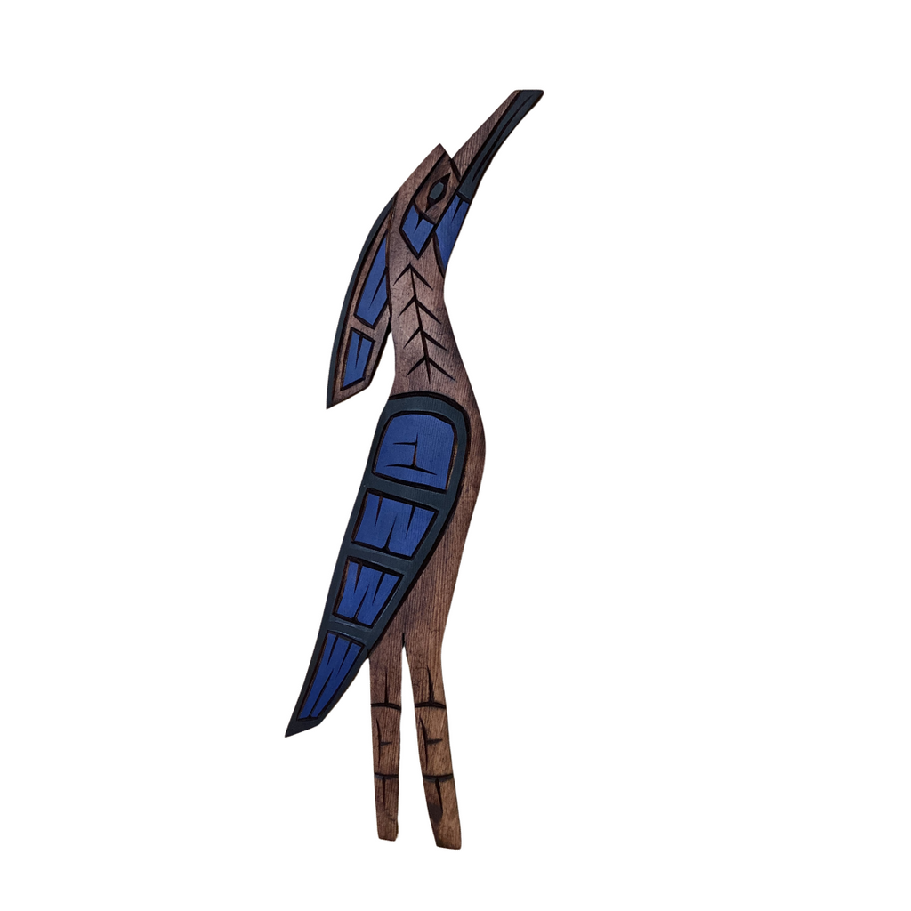 The Heron plaque was hand-carved and painted by Penelakut artist, Delbert Peter.
